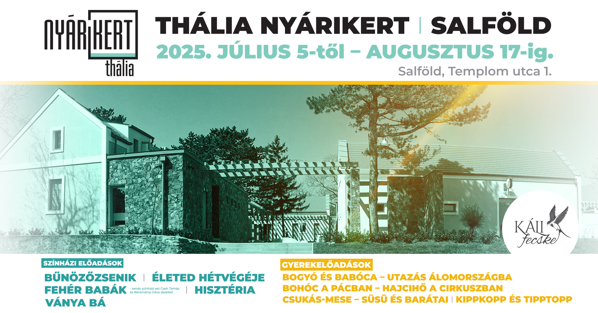A Thália Nyárikert különleges atmoszférája, a fedett színpad és a 250 fős szabadtéri nézőtér lehetőséget biztosít arra, hogy a közönség egyedülálló környezetben élvezhesse a teátrum gondosan összeállított műsorát. Idén olyan nagy sikerű előadások érkeznek Salföldre, mint a Bűnözőzsenik, a Hisztéria, a Fehér Babák, az Életed hétvégéje, valamint a klasszikus Ványa bá. A gyermekek sem maradnak ki a varázsból: a Kippkopp és Tipptopp, a Bogyó és Babóca – Utazás álomországba, a Bohóc a pácban és a Csukás-mese – Süsü és barátai is színpadra kerülnek.