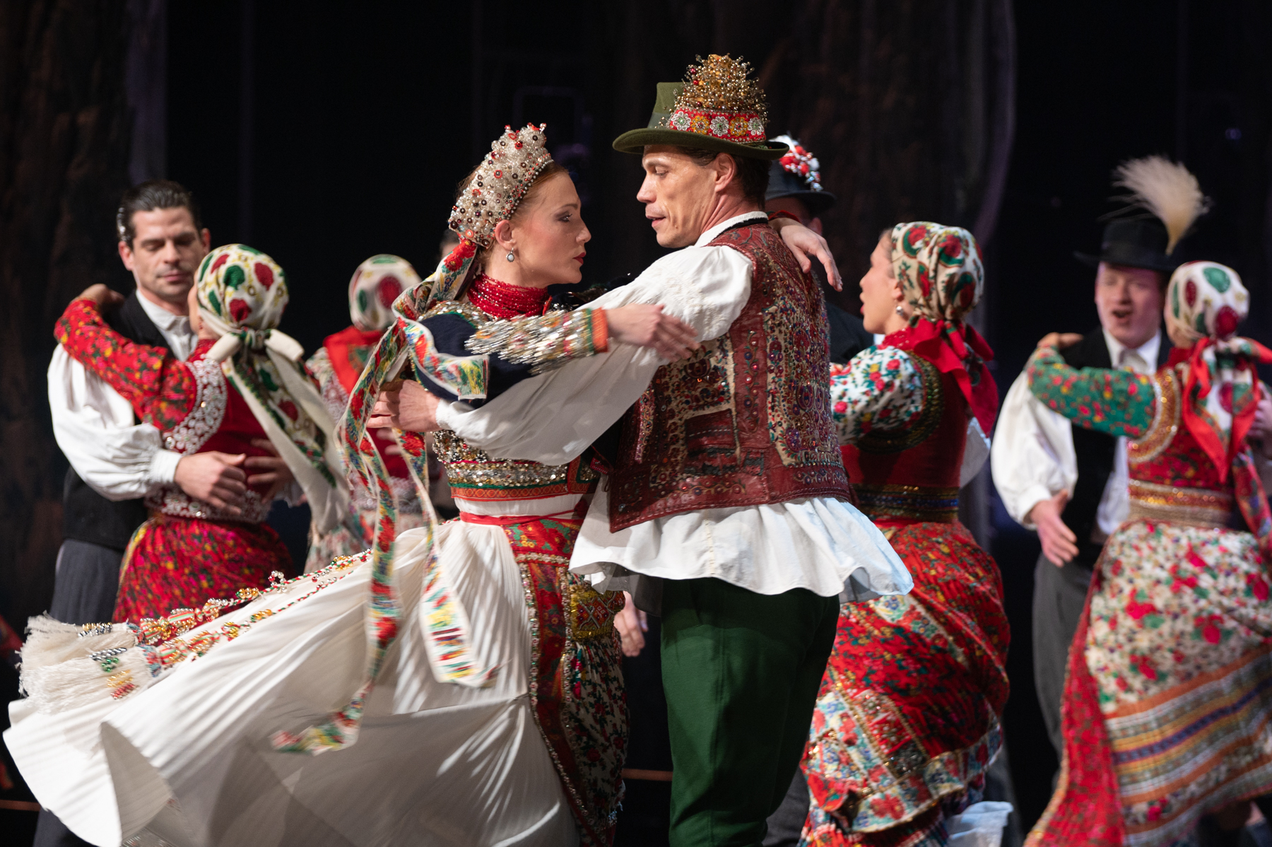 A néző azonosulni kezd a feleséggel és idővel látja, hogy miért szenved. A darab nagyon világosan közvetíti az üzeneteteket és az érzéseket. A kulcsfontosságú információk közvetítése mellett viszont egy másik fontos, talán magasztosabb szolgálatot is ellát: bepillantást nyújt az erdélyi, azon belül a kalotaszegi és székely tánckultúrába. Utóbbira valamelyest havasalföldi táncok is hatással voltak és ezek a hatások az előadásban is visszaköszönnek. A katonákat, falusi népeket, pásztorokat, bírákat vegyítő tömegjelenetek többsége vidám, néha katonásan precíz, fennkölt és játékos. Egy ízben például a hölgyek ropják a legényest, nem pedig a férfiak. Ez a fajta „huncutság” mindenképpen váratlan és jól áll ennek a darabnak, mert oldja a feszültséget, még akkor is, ha belül sejtjük, mi lehet a végkifejlet.