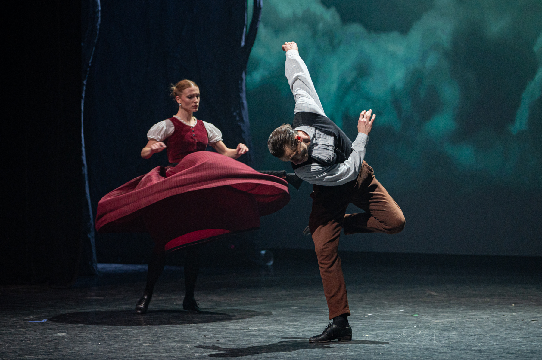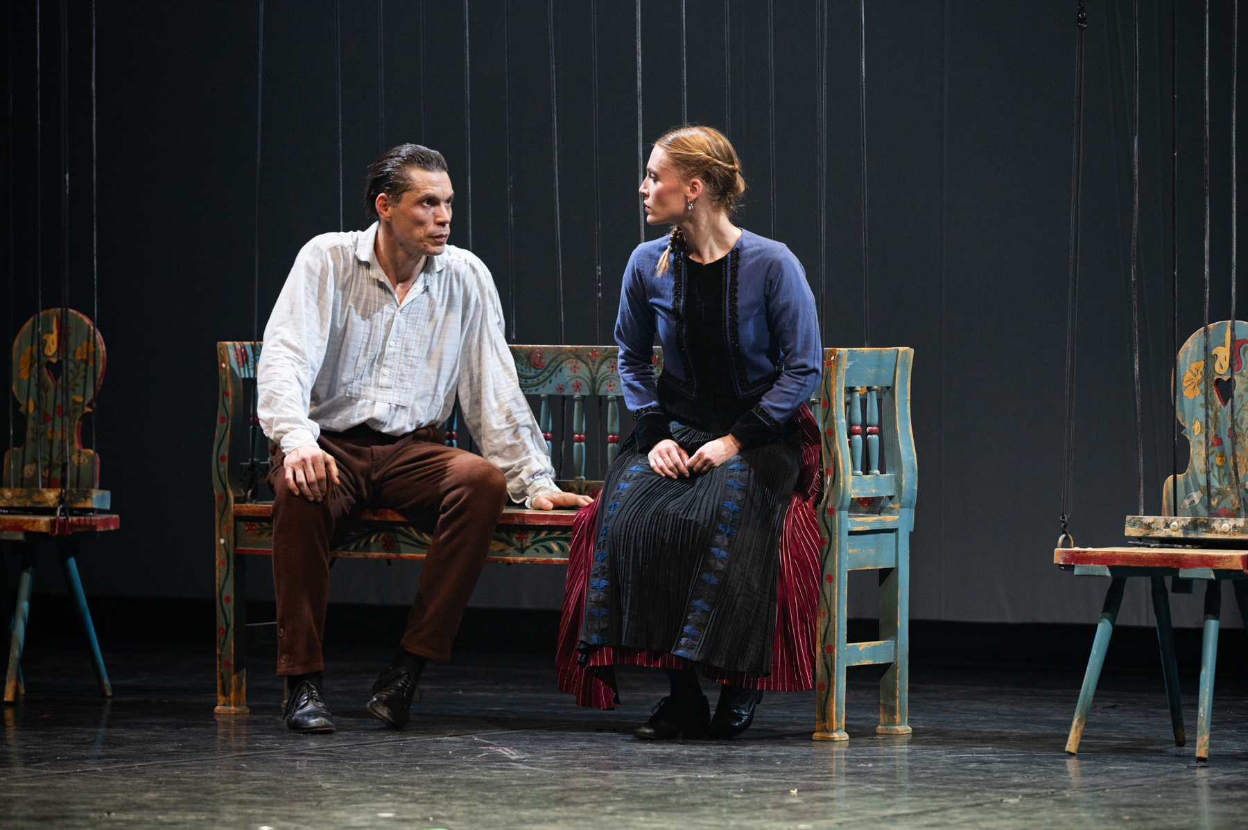 És ettől olyan varázslatos a Hűtlen feleség, mert kemény munkával betanult táncok, a beszédes mozdulatok, a gondosan megválogatott díszletek, kellékek segítenek megteremteni azt a hangulatot, azt a közeget, amelyben hitelesen elmesélődhet a főszereplő története és tragédiája. Ebben kulcs szerepet játszanak a feleség (Paput Júlia) és a férj (Tókos Attila) páros jelenetei, amelyek tűpontosan visszaadják azt, hogy érzelmi (és testi) szempontból ki a domináns. És nehéz lenne „csak” táncosnak nevezni őket, hiszen olyan színészi munkáról tesznek tanúbizonyságot, ami csak az igazán tehetséges drámai színészek erőssége. A dráma azért nehéz műfaj, mert egy suta mozdulat, egy félresikerült mimika komikussá teheti azt a figurát, aki valójában a drámai cselekmények tevékeny alakítója.