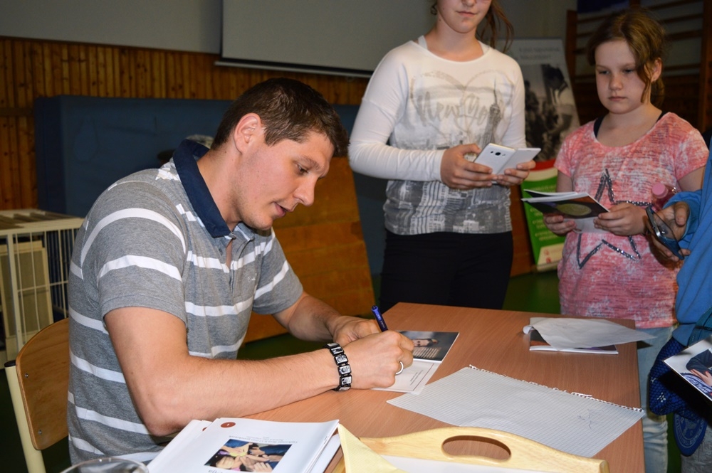 A látogatáson a sportoló többek között beszámolt arról, miért lett kosárlabdázó, emellett a sportsikereinek titkáról is beszélt. „Én egy sportcsaládból származom. Édesapám profi futballista volt, aki az 1985-ös az UEFA negyeddöntő visszavágóján gólt lőtt a Manchester Unitednek a Videoton színeiben. Éppen ezért kézenfekvő volt, hogy én is a sporttal foglalkozzak” – jegyezte meg a válogatott kosárlabdázó. Azt is elárulta, hogy gyermekkorában Michael Jordan kosárlabdázó volt a példaképe. Hozzátette: nemcsak a sportolóknak, hanem mindenkinek fontos az egészséges táplálkozás és mozgásban gazdag életmód.