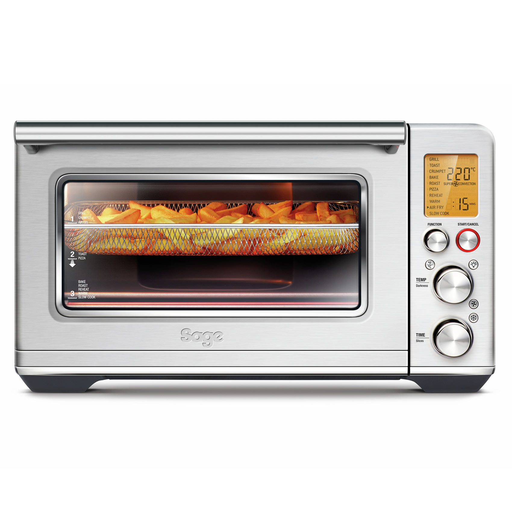 A Sage újdonsága 10 darab előre beállított főzési funkciót kínál, amelyek a következők: forrólevegős sütés, meleg- és lassú főzés, sült hűs, pirítós készítése (hat szelet), palacsinta, grill, pizza (30 cm), pirítás, valamint a melegen tartás.