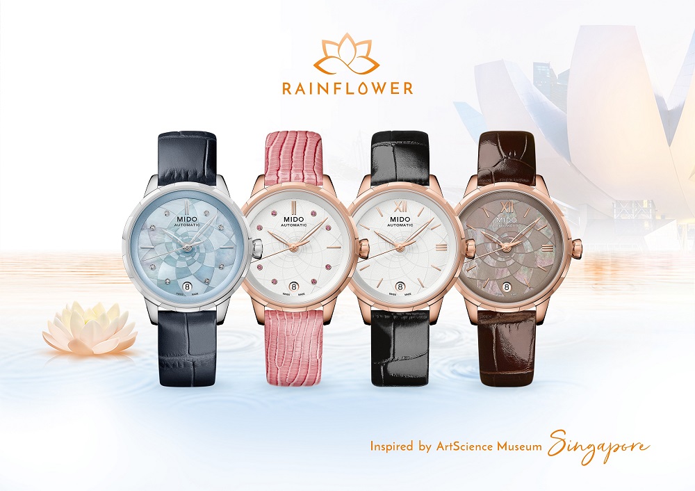 A Mido Rainflower kollekciót letisztult vonalvezetés, finom ívek és a természet sokszínűségének megjelenítése jellemzi. A Rainflower egy kizárólag nők számára készült sorozat, amely a könnyed és lekerekített elemeknek köszönhetően rendkívül kifinomult stílust képvisel.