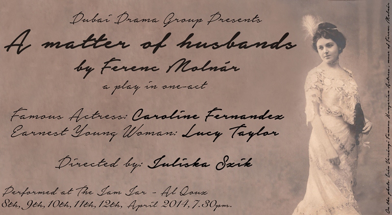 Tavaly tavasszal mutattuk be a Dubai Drama Group szervezésében "A Matter of Husbands” vagy a "A férjekkel mindig baj van” című egyfelvonásos darabot. Molnár annak ellenére, hogy Európa-szerte és Amerikában is ismert és ünnepelt szerző itt a Közel- Keleten senki nem ismeri a műveit. Nekem személyes nagy kedvencem, szerettem volna ebből a békebeli, sajátosan magyar miliőből egy kis morzsát átmenteni ide. Nagyon boldog voltam mikor az egyik előadás után egy néző megkeresett és azt mondta, hogy ilyen fajta intim és belsőséges színházat itt még Dubajban soha az életében nem látott. Pont ez volt a célom.
