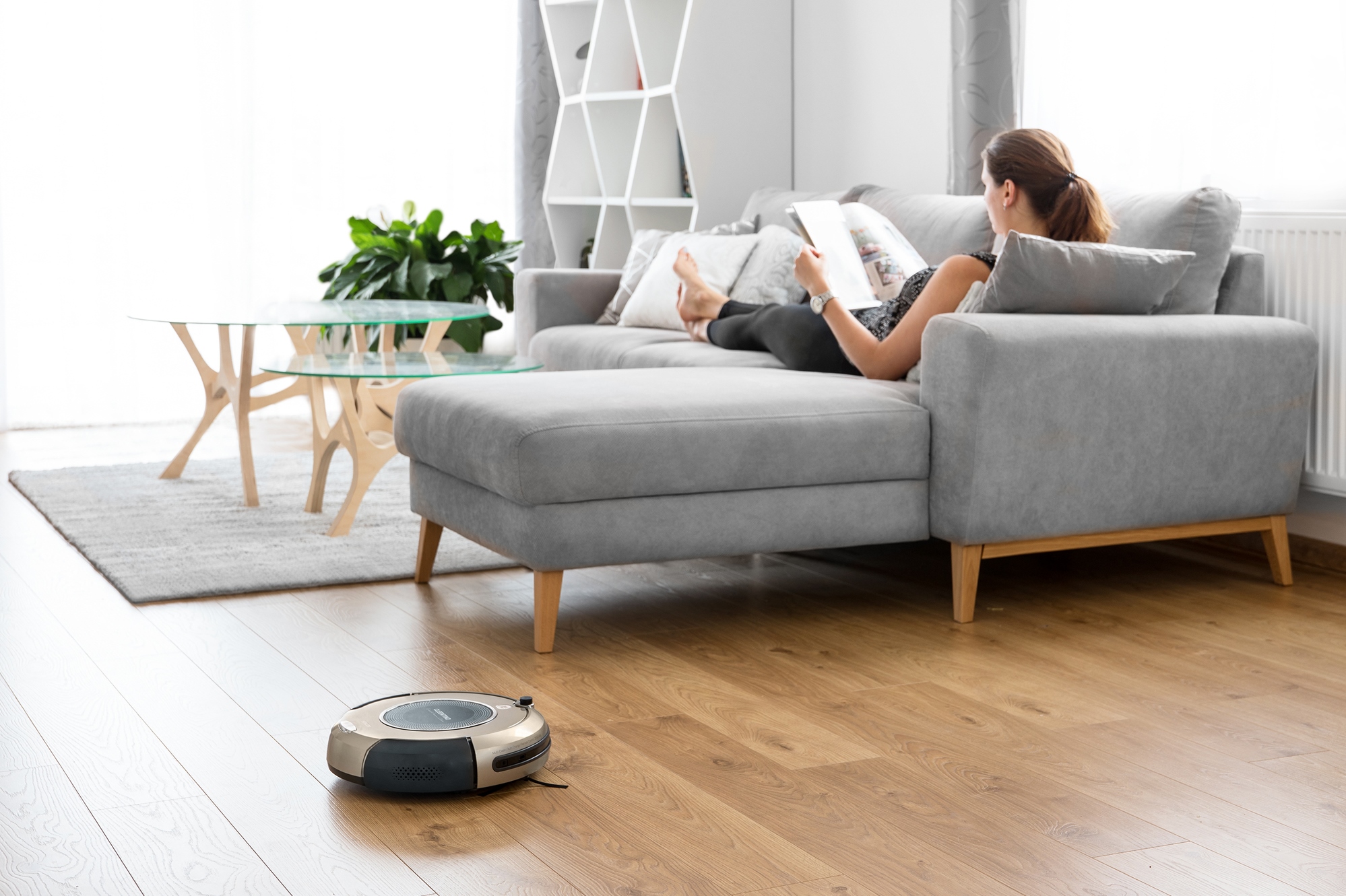 A „Milia” fantázianevet viselő SRV 1000SL típusú robotporszívó egyszerűen és praktikusan működtethető. Aktiválásához mindössze a tetején található gombot kell megnyomni és már neki is lát a lakás takarításának. A 15 W teljesítményű porszívó fel van vértezve minden szükséges fejlesztéssel ahhoz, hogy munkáját akadálytalanul végezhesse. Ötletes formai kialakításának köszönhetően kerekeit a padlón található hajszálak és a különféle vezetékek nem blokkolják le, az oldalán található szenzorok pedig meggátolják, hogy neki ütközzön a különféle berendezési tárgyaknak és bútoroknak. Az érzékelők emellett azt is megakadályozzák, hogy a porszívó leessen a lépcsőről.