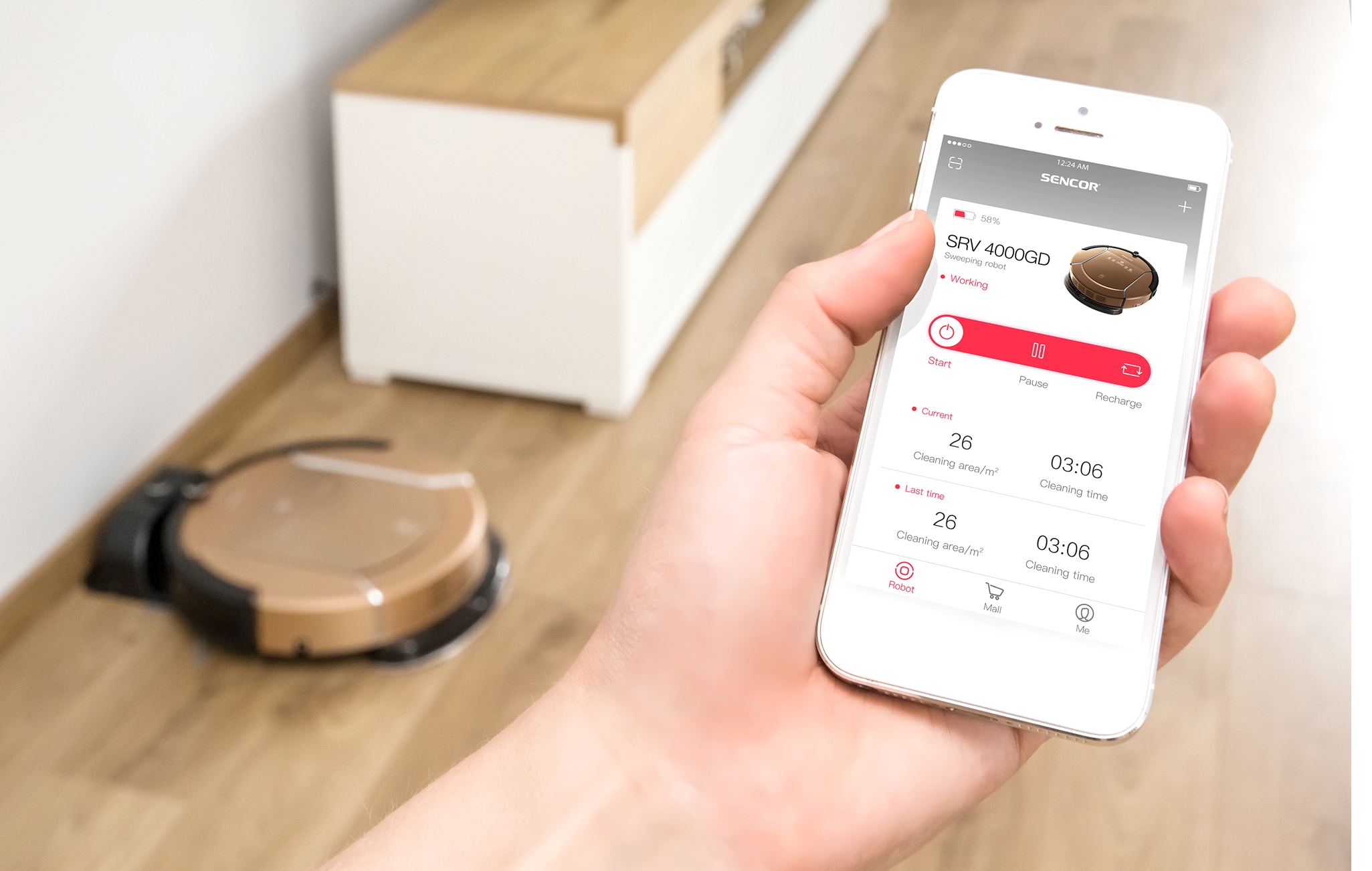 A SRV 4000GD robotporszívó rendkívül csendes, legfeljebb 60 dB-es működési zajjal rendelkezik, így nem zavarja a házi állatokat. A készüléket nagy teljesítményű porszívóval, valamint három forgókefével látták el, ennek köszönhetően szőnyegek takarítására is használható. Ezen tulajdonságát erősíti, hogy akár 2 centiméter vastag szőnyegre is képes felhajtani. Mivel a készülék meglehetősen nagy, mintegy 120 perces működési idővel rendelkezik, ezért méretéhez képest jókora, 500 ml-es mosható gyűjtőtartállyal szerelték fel. „Működése Cleentinóhoz hasonlóan napra és perce pontosan időzíthető, emellett a mobilalkalmazásnak, valamint a készülék wifi-kapcsolatának köszönhetően akár otthonunktól távol is vezérelhetjük” – hívta fel a figyelmet a Sencor termékmenedzsere. Az alkalmazás, vagy a távirányító segítségével négyféle - takarítási program - így fal melletti, kis területen történő, véletlenszerű, valamint minden felületet kétszer takarító – program közül választhatnak a felhasználók.