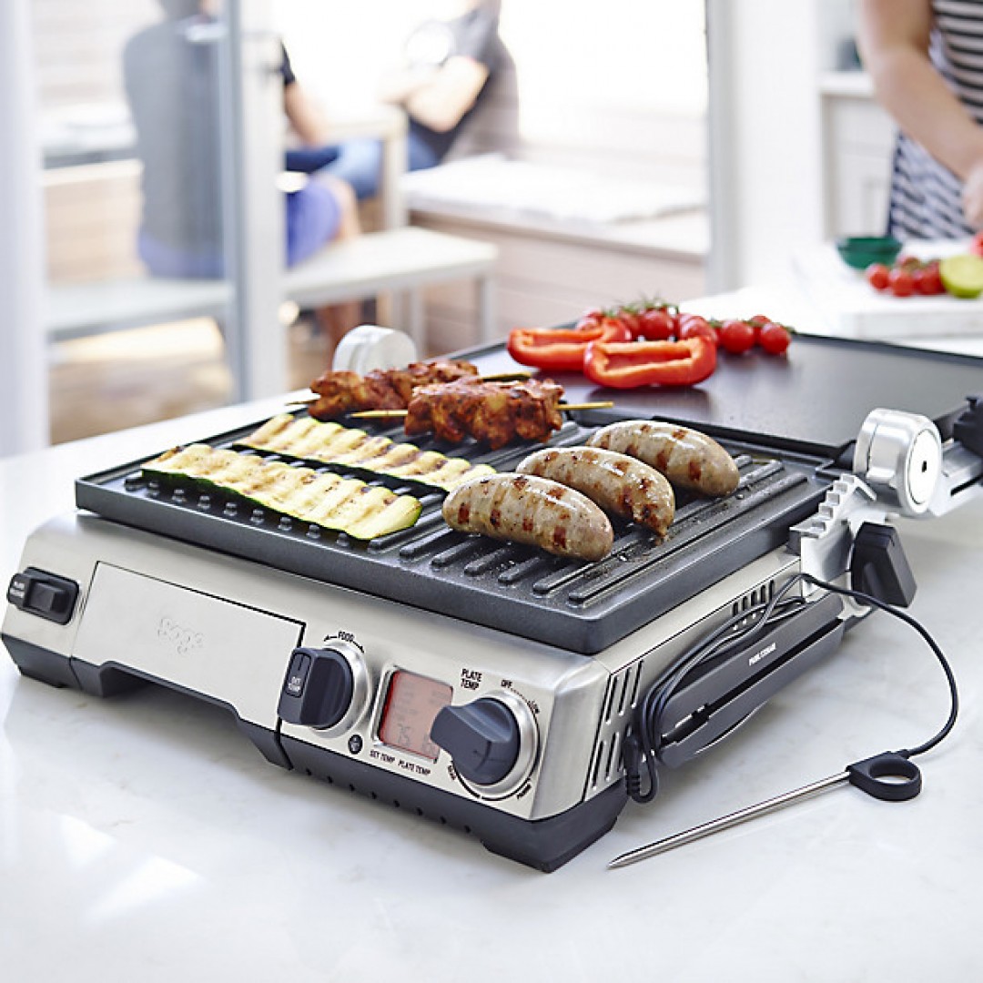 A megfelelő eredmény érdekében a Sage BGR 840-est beépített maghőmérővel is ellátták. Ez kiváló segítséget nyújt a húsok és halak sütésekor. Használatához egyszerűen ki kell választani a hús típusát és a kívánt sütési szintet, majd bele kell szúrni a húsba a szondát. A grillsütő jelezni fogja, amikor az étel elkészül vagy a beállított sütési szintet eléri.