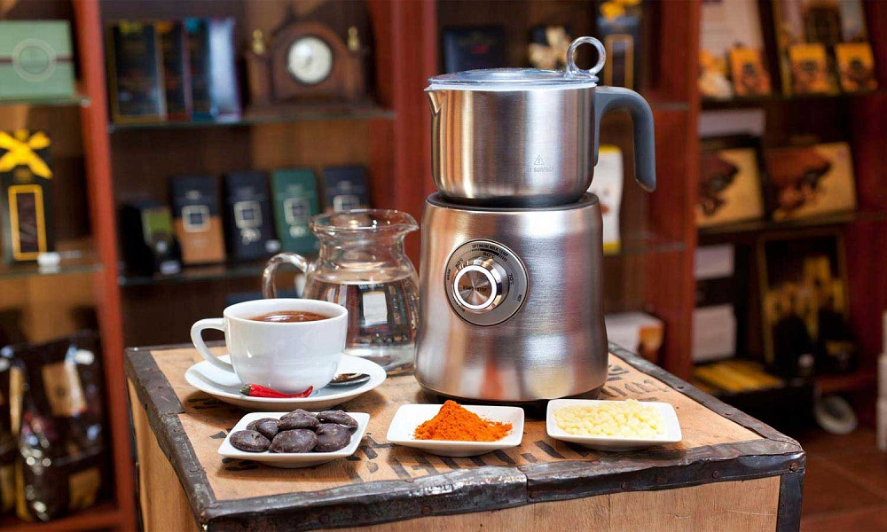 - A tejhabosító ( például Sage BMF600) készüléken állítsa be a hőmérsékletet 60°C-ra. Lassan adja hozzá a csokoládé darabkákat! 250 ml vízhez kb. 50g étcsokoládé, ill. 60g fehércsokoládé szükséges és maximum egy teáskanál kakaóvajat adjon hozzá.