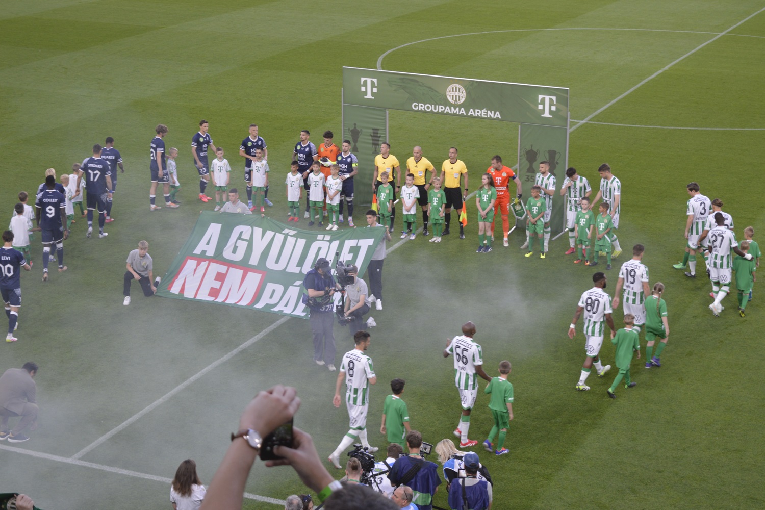 Robbie Keane a bajnokesélyes hazai csapatot a korábbi fordulókban kialakult felállás szerint küldte pályára. Ennek köszönhetően Pesics, Varga Barnabás, Szalai Gábor, Tóth Alex, Júlio Romao, Maiga, Cissé, Civic, Makreckis Gartenmann és Dibusz is kezdő volt. A vendégeknél Hornyák Zsolt Pécsit, Duartét, Colley-t, Levi-t, Gollát, Stronatit, Favorovot, Soisalo-t, Harutjunjant, Maceirast és Nagy Zsoltot jelölte a kezdőbe. A mintegy 19 ezer szurkoló előtt játszott mérkőzést a Fradi kezdte vérmesebben, láthatóan a hazaiak szerettek volna korán betalálni.
