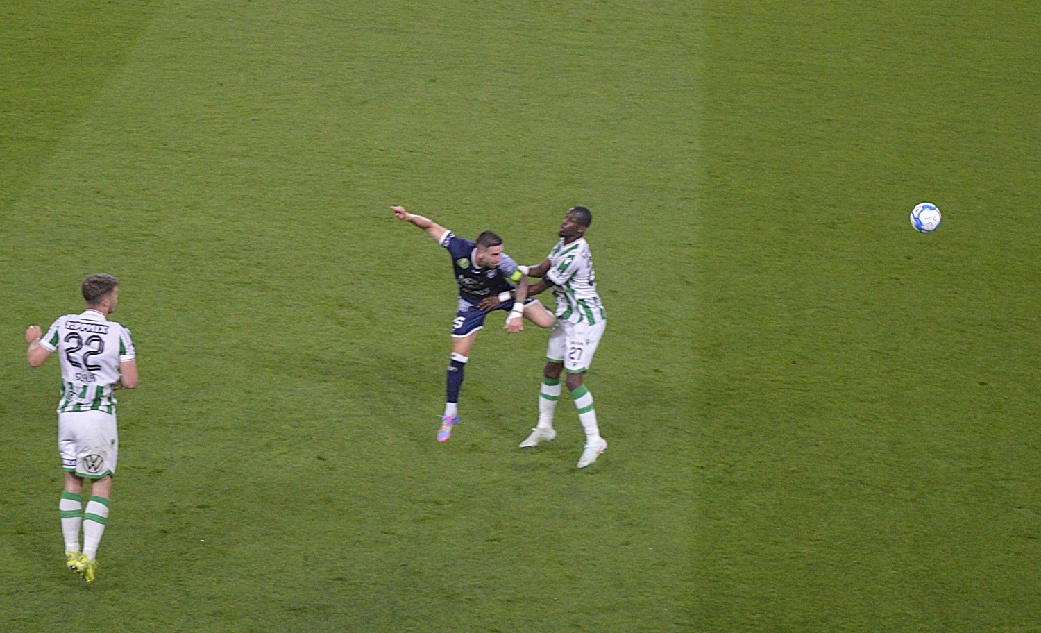A következő percekben ugyan a vendégek megkísérelték magukhoz venni a kezdeményezést, de jól működött a Fradi-védelem, így a harc a középpályára helyeződött át. Abu Fani érkezésével jóval pontosabb és gördülékenyebb lett a Fradi támadójátéka. Az 55. percben Pesicset Saldanha váltotta. Az új játékos azonban cselt rontott a vendégek kapujánál, amiből a Puskás Akadémia kontrázhatott. Ebből majdnem gól lett. Robbie Keane ezután dühösen mutatta a brazil csatárnak, hogy még egy ilyen és lecseréli. Saldanha megérthette a fenyegetést, mert nem sokkal később majdnem gólt szerzett a térfél közepéről.
