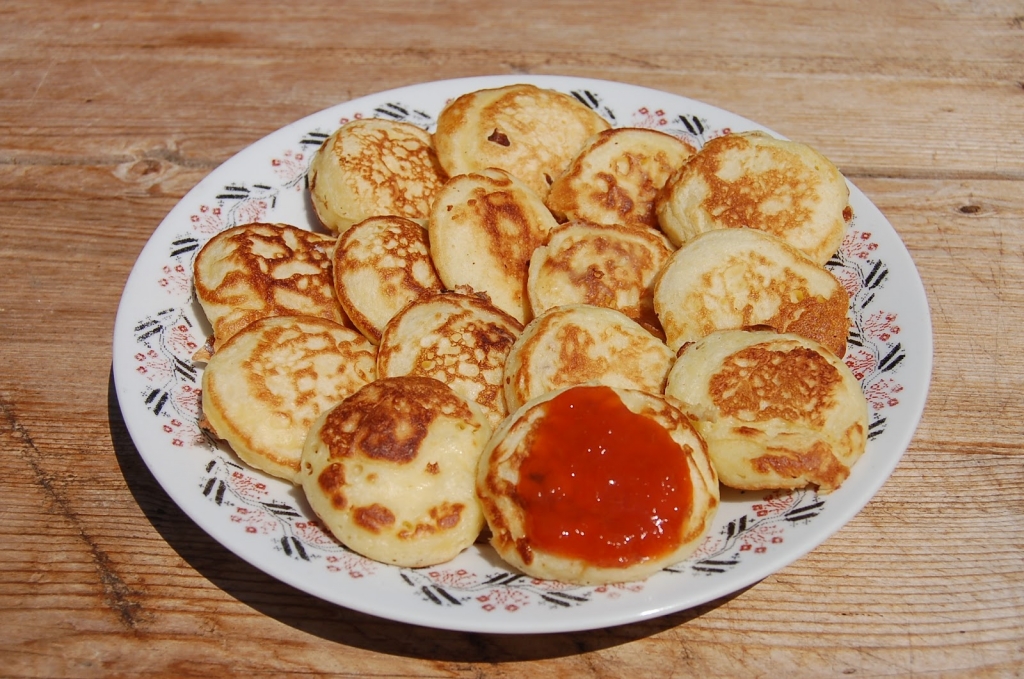 A lisztet egy tálba tesszük, közepébe mélyedést fúrunk és abban kis langyos tejjel és egy kiskanál cukorral felfuttatjuk az elmorzsolt élesztőt. Hozzáadjuk a tojást, a cukrot, apránként a tejet és homogén masszává keverjük. Ezután legalább fél óráig letakarva kelesztjük. A talkedlisütő mélyedéseit kis zsírral kikenjük és belekenalazunk a tésztából. Kb. 4-5 percig sütjük kis lángon, majd villával megfordítjuk és a másik oldalát is megsütjük. Lekvárral tálaljuk.