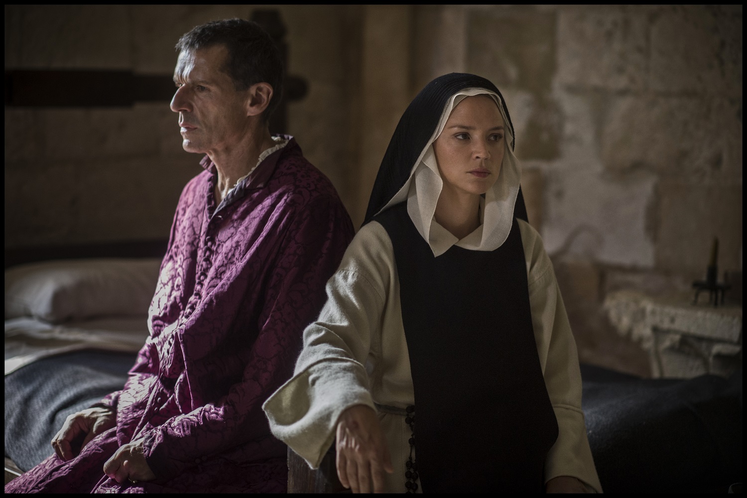 Szintén a Cannes-i versenyprogramban szerepelt az Elemi ösztön rendezője, Paul Verhoeven valós történeten alapuló romantikus történelmi drámája, a Benedetta (felső kép), Virginie Efirával, Charlotte Ramplinggal és Lambert Wilsonnal a főszerepben. Az erotikával átszőtt filmben az ifjú Benedetta már egészen fiatal kora óta csodatévő hírében áll. Mikor bevonul a pesciai kolostorba, jelenléte alaposan felkavarja a közösség életét…