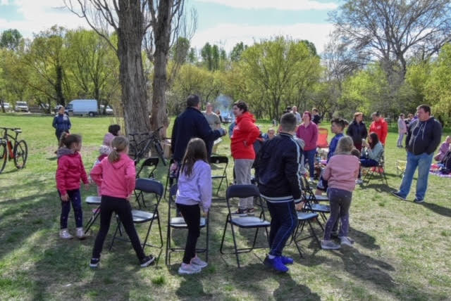 Ezután az önkéntes lelkészek útja a Nagycsaládosok Újpalotai Egyesületéhez vezetett, akikhez szintén több száz csokinyuszit, csokitojást szállítottak – játékokkal, ruhákkal és 1000 db tojással megtoldva. Az adomány egy óriási összefogás részévé vált, hiszen a Nagycsaládosok Újpalotai Egyesülete 230 főnek Húsvéti Családi Napot szervezett a helyi önkormányzat, a Magyar Református Szeretetszolgálat, a Foodpanda és civilek segítségével, amire egy XV. kerületi parkban került sor. Volt bográcsokban sütés-főzés, gyerekeknek és felnőtteknek locsolóversmondás csokinyuszi-jutalomért, tombola, sport, buborékfújás, székfoglaló játék, ügyességi játékok és sok más szórakoztató program. A hatalmas piknik fő műsorszáma természetesen a tojásvadászat volt, hiszen a „nyuszi” közel 1000 db csokit rejtett el a fűben és a bokrokban. A vendégek között voltak ukrán menekültcsaládok is, akik így legalább egy kis időre hátra hagyhatták gondjaikat és önfeledten játszhattak a többiekkel.