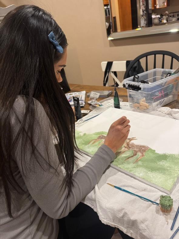 Yeah! I love painting—I’ve been doing it forever. Most of my early work is from when I was five! I’ve done some more recently too. I’m self-taught. I also play guitar and piano. My mom taught me violin. And I enjoy sports—I played volleyball for eight years. I also really love to cook and bake!