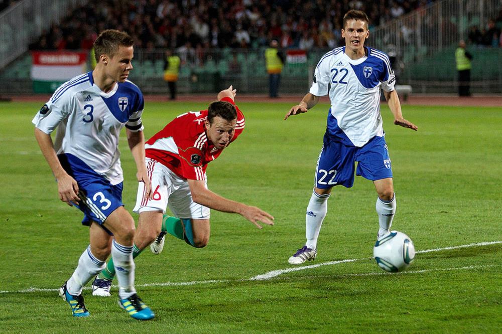 20 óra van, az idő is kegyes. Nem esik, jó a hangulat. A finnek teli torokból éltetik országukat. Csak így a magyarok. Először a finn himnusz hangzik fel mire az egész stadion áll, majd következik a magyar. A tömeg énekel, telt ház van. Igaz, a jegyek már akkor elfogytak, mikor még élt a remény, hogy az északiak kikaparják valahogy a gesztenyét nekünk pénteken, ám a finn-svéd 1-2 lett. Ezért is olyan barátságos most a találkozó. A meccs azonban nem igazán emlékeztet egy tét nélküli összecsapásra. Akad súlyos szabálytalanság nem is kevés, persze mondhatnánk, ezek csak az első percek izgalmai. Támadunk, jár a labda, ám sokat nem lehetne mondani. Majd 10 percet kell várni az első komoly helyzetre. Szabics dől el az ellenfél tizenhatosán belül. Mi lesz ebből 11-es? Áh, dehogy. A spanyol állítólag össze-vissza ítél. Az én benyomáson azonban az, hogy gyakran sehogy, pedig egy-egy durva szabálytalanság mindkét oldalon felbukkan.