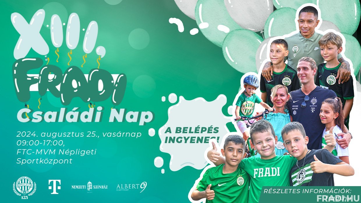 Az idén sem maradhat el az FTC és az Albert Alapítvány immár hagyománnyá vált rendezvénye. 2024. augusztus 25-én, vasárnap reggel 9 órai kezdettel a XIII. Fradi Családi Nap alkalmából várják az érdeklődőket az FTC-MVM Népligeti Sportközpontba! Az Albert Flórián Labdarúgó Utánpótlás és Sportalapítvány által szervezett esemény a 2023-as sikerek nyomán zsinórban már a második évben nem csak sportos, hanem kulturális programokat is kínál.