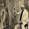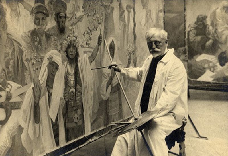 Korábban a festményciklus több mint négy évtizeden át a dél-morvaországi Moravsky Krumlov kastélyában volt, mert Prágában nem volt számára megfelelő kiállítóterem. A képciklus Prágában előzőleg csak 1928-ban volt rövid ideig látható, később évtizedekig raktárban őrizték, majd 1963-ban Moravsky Krumlovba vitték. Prágába a Szláv eposz 2010-ben került vissza. Alfons Mucha 1860. július 24-én született Ivancice morva kisvárosban apja második házasságából. A szecesszió nagymestere 1939. július 14-én Prágában halt meg.