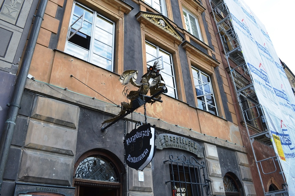 Az "Örökké legyőzhetetlen" ( "Semper invicta") lengyel fővárost 1944-ben porig rombolták a németek. A náci megszállók a varsói felkelést akarták ily módon megbosszulni és a pusztítás során a földdel tették egyenlővé a lengyel főváros óvárosát is. A németek szinte felismerhetetlenségig szétlőtték az Óvárosi piactéren ( Rynek Starego Miasta) található épületeket, melyek újjáépítését az '50-es években kezdték meg. Ezek között van Varsó egyik legkiválóbb éttermének helyet adó Bazyliszek [4] (Bazilikusz) is, melyet a magyar nyelven is elérhető, ingyenesen letölthető Warsaw Guide alkalmazás is ajánl. De idén májusban nem ezért kerestem fel, hanem azért, mert már korábban is volt szerencsém az étteremhez, ezért amikor korogni kezdett a gyomrom, eszembe jutott a mondás, miszerint "járt utat járatlanra el ne hagyj!"