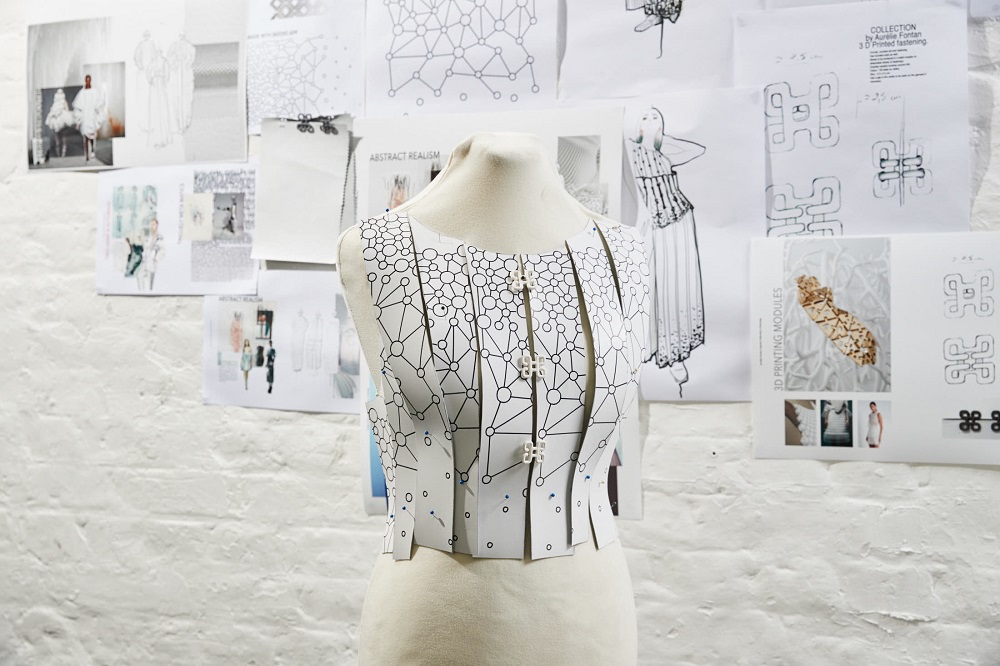 - A mintás bőranyagokat 3D nyomtatott öltésekkel illesztették össze, így nyerte el a ruha a végleges formáját.
