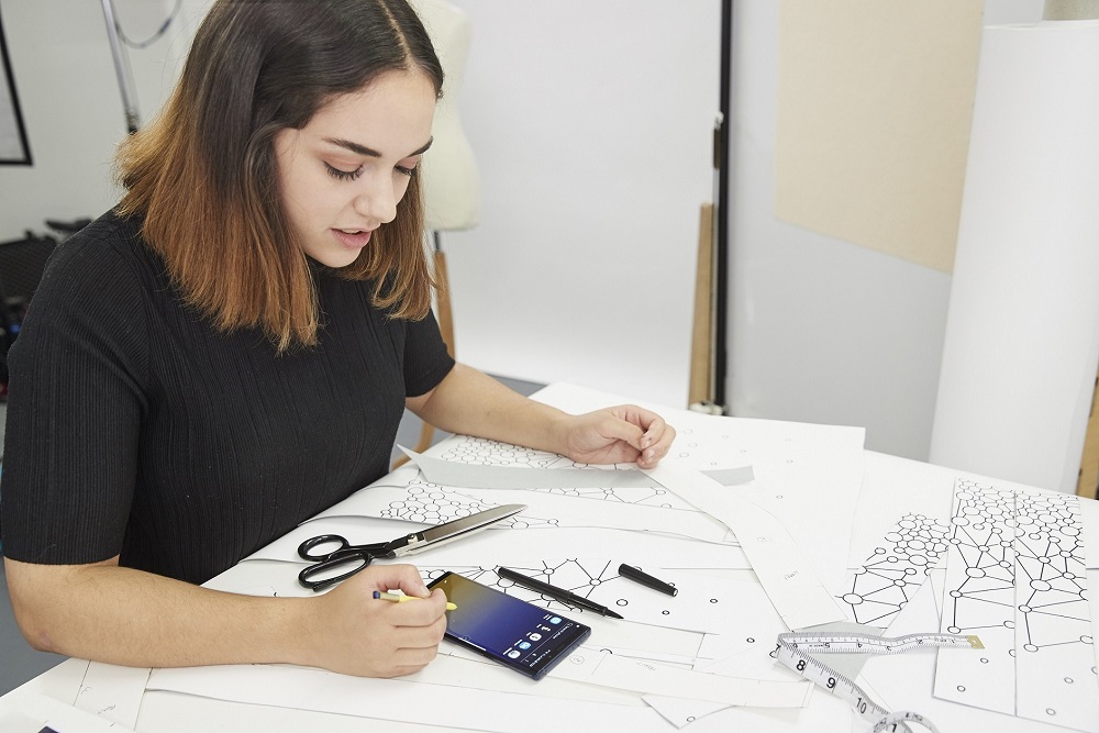 A Samsunggal együttműködve Aurélie a Mobile Couture kollekciójának hét főbb lépésből álló kivitelezéséhez kizárólag a Galaxy Note9 készülékét használta. A Galaxy Note9 S Pen tollának köszönhetően precízen tudta felskiccelni a terveit, míg a készülék nagy teljesítményének, tárhelyének valamint a technológiai berendezésekhez való akadálytalan csatlakozásnak köszönhetően valós időben szerkeszthette az anyagokat, felgyorsítva és megújítva a tervezés egyes fázisait és a végső gyártást – mindezt egyetlen, a zsebében elférő készülékről. Csupán egy szemléletes adat a sok közül: Aurélie a Galaxy Note9 innovatív használatával 40 százalékkal felgyorsította a prototípus megalkotásának fázisait, a kollekció a szokásos 14 nap helyett mindössze 8 nap alatt elkészült.