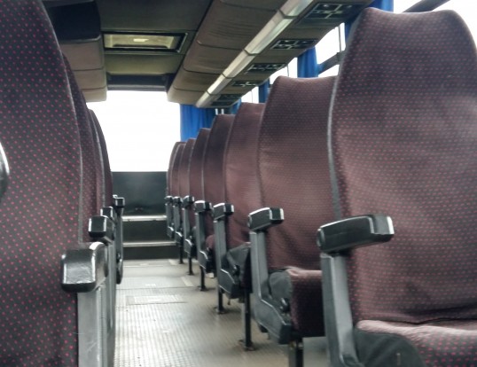 The bus has 9 meters length, 2,44 meters width and 3,1 meters height. All of the 32 passenger seats are a in good condition, they even have the original seat cover. It seems the previous operators were taking good care of this curio. The current owner, Zoltán Lakatos said that as far he knows the bus was serivicing originally in Budapest by TransEuro2003 Ltd., then the Nyíracsád-based Nyírtrans Ltd. bought it and in 2014 the bus had again a new owner. It was a company, which was concerned with pomology. This year Lakatos Zoltán bought the bus and he wanted to use it for transporting seasonal workers on his fields, because he is also engaged to agriculture industry.