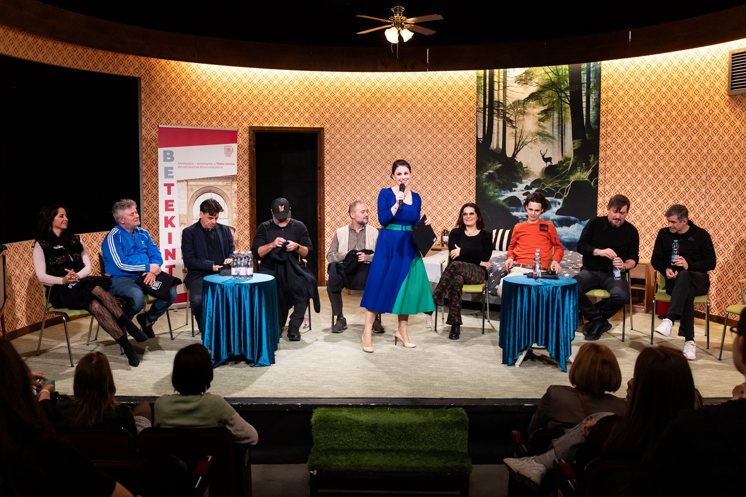 A beszélgetés egy jó hangulatú kérdezz-felelek formájában indult, amelyen keresztül a közönség első kézből értesülhetett arról, hogyan áll össze pontosan egy színpadi előadás, és hol tartanak az alkotók a főpróbahét előtti izgalmas időszakban. Tasnádi Csaba, A miniszter félrelép rendezője elárulta, hogy bár a darab széles körben ismert, köszönhetően a filmnek és korábbi színpadi feldolgozásoknak, kemény munka zajlik a háttérben, hogy a közönség egy friss, mégis szerethető előadást kapjon. „Mind az ízlésünk, mind a bohózatoktól várt igény sokat változott az évek során, ezért igyekszünk úgy megújítani a darabot, hogy közben megőrizzük annak klasszikus humorát.” – emelte ki Csaba.