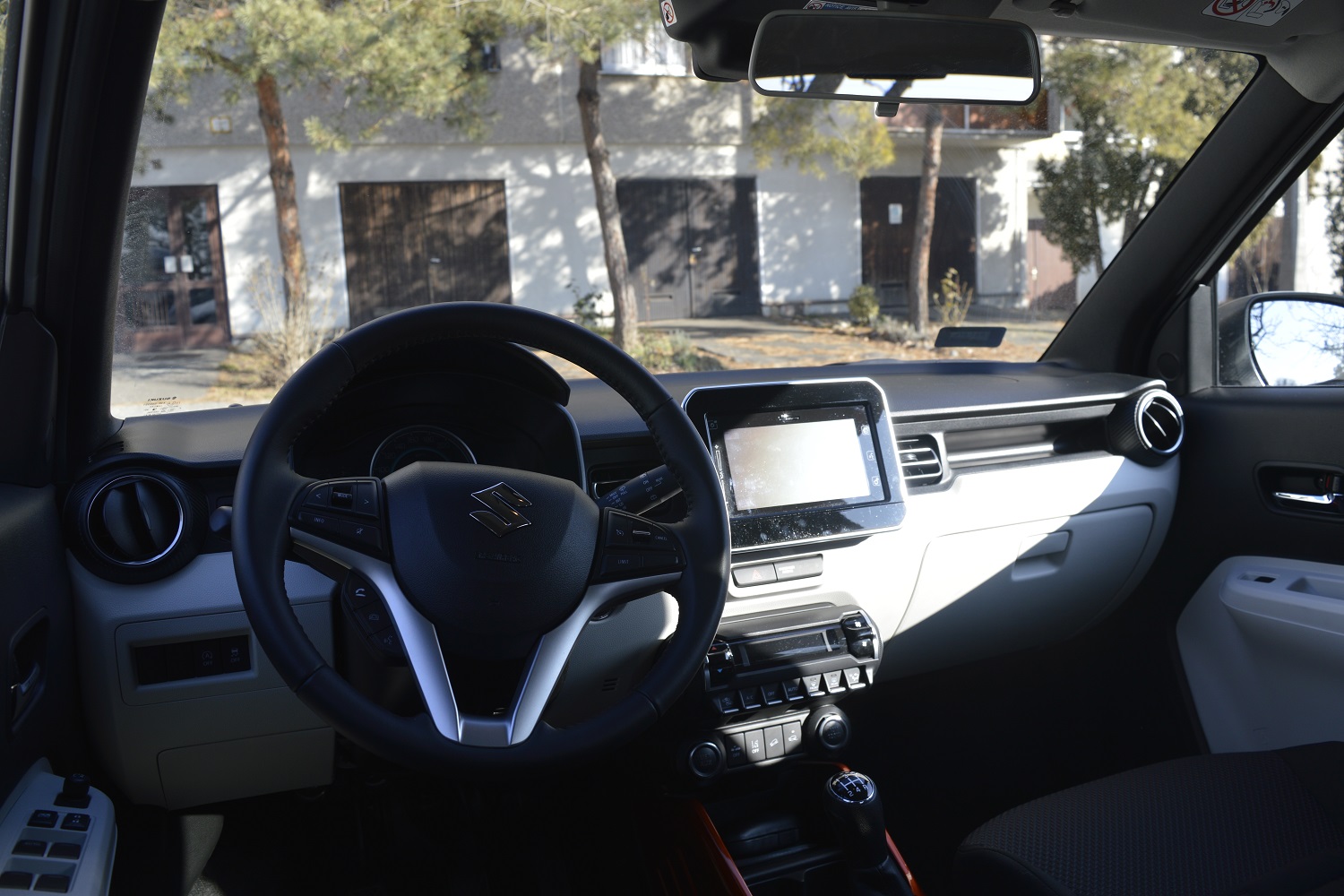 A hibrid Ignis belső tere rendelkezik azokkal az előnyös tulajdonságokkal, amelyekkel benzines társai is büszkélkedhetnek. Utastere tágas, elől-hátul nagy fej- és lábtér áll az utasok rendelkezésére, ugyanakkor elől a válltér a jármű méreteiből adódóan kissé limitált. Az ülések kényelmesek, az ülésfűtés gyorsan és hatékonyan melegíti fel az ülőalkalmatosságokat. A páramentesítés is viszonylag gyorsan megoldható az Ignisben a hátsó szélvédő fűtésével, illetve elől a forró levegő befújással. További pozitívum, hogy az ISOFIX-pontokat kreatívan, műanyag borító elemekkel tették védetté a hátsó üléspadban. Ennek előnye, hogy az ISOFIX-pontok nem tűnnek el a kárpitban, így a gyerekülések gyorsan és egyszerűen pattinthatók be. A hátul utazó csöppségek a jármű magas építésének köszönhetően könnyen kilátnak, így sokáig gyönyörködhetnek az elsuhanó tájban. Szintén gyermekbarát megoldás, hogy az elülső légzsák egy gombnyomással kikapcsolható. Az utasajtókban nagy, fél literes üdítőknek is elegendő palacktartókat alakítottak ki, a kardántengelyen pedig helyet kapott egy pohártartó, amely a legkülönfélébb alakú babakulacsokat is képes elnyelni. A fehér oldalburkolatok, valamint a narancssárga fogantyúk japános vidámsággal és fiatalossággal ruházzák fel az utasteret.
